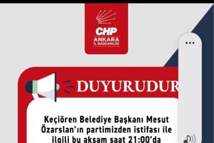 CHP Ankara İl Başkanlığı, Keçiören Belediye Başkanı Mesut Özarslan’ın partiden istifasına ilişkin…