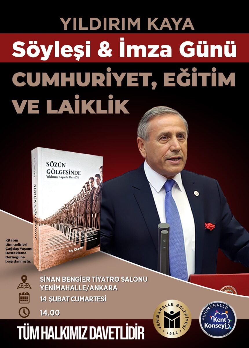 27. Dönem CHP Ankara Milletvekili Yıldırım Kaya, “Cumhuriyet, Eğitim ve Laiklik” başlıklı söyleşide basın emekçileri ve vatandaşlarla buluşacak. Etkinlikte ayrıca “Sözün Gölgesinde – Yıldırım Kaya ile Ders Zili” kitabı için imza günü düzenlenecek.